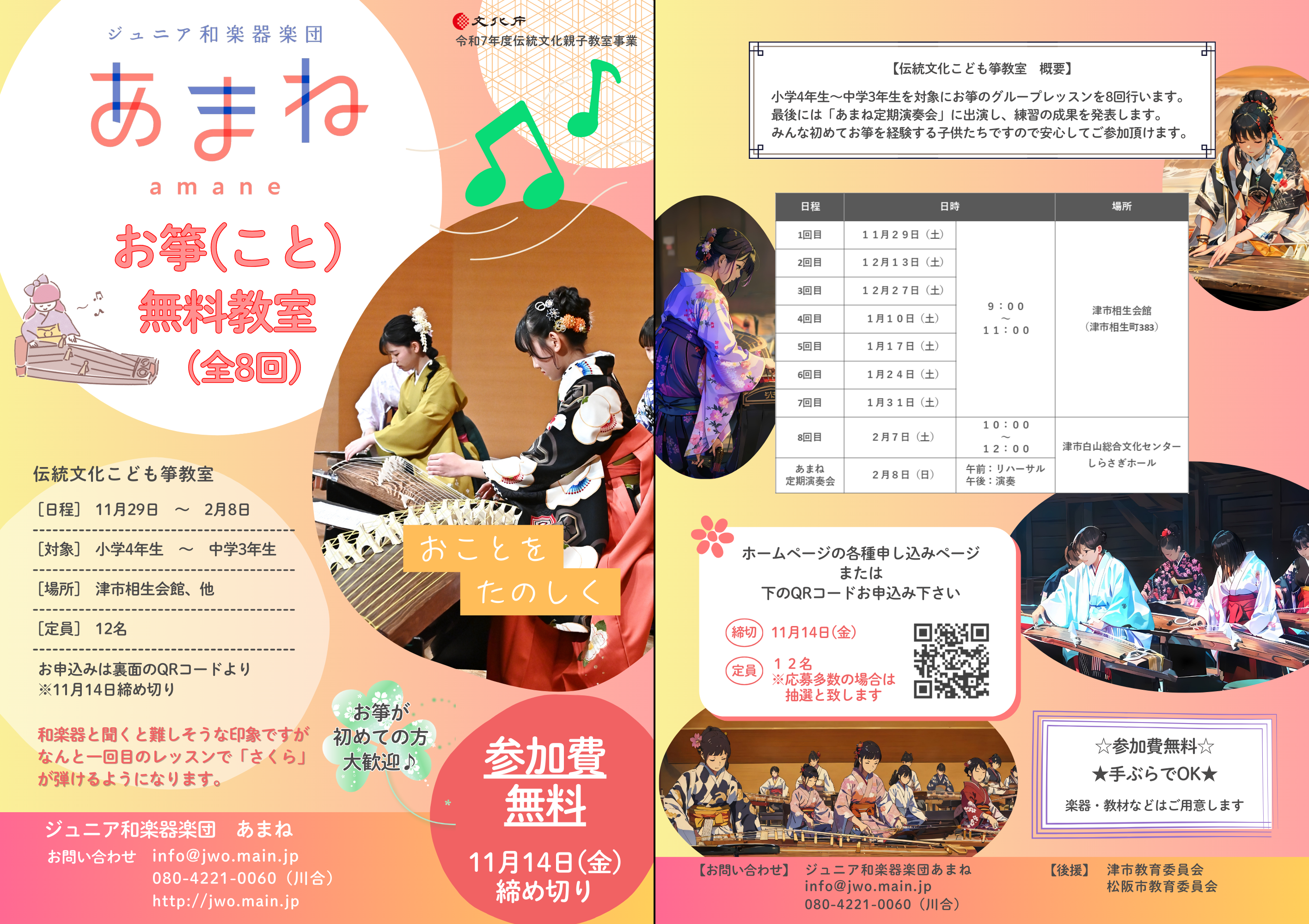 ただし箏爪(生田流角爪)は各自でご購入頂きます。